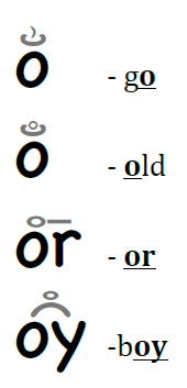 The letter ‘o’ can represent several different sounds, such as in these words. (Left Insert)