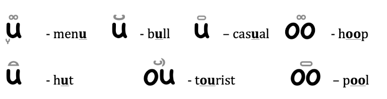 The symbols used in the examples below correspond to a South-Eastern British accent similar, but not identical to British ‘RP’.