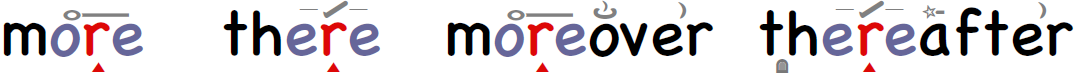 Where vowels represent both consonant and vowel sounds (e.g. u in use, o in one), the consonant SPS lies to the extreme left under the first letter in the vowel grapheme to indicate it is the first sound produced. For Example